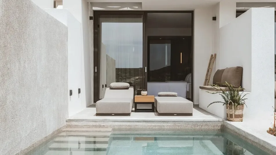 Atmosfera je sofisticirana, minimalistička i izrazito mirna – resort je odrasli gosti koncept, pa je idealan za parove, medeni mesec i putnike koji traže luksuz bez gužve, uz privatnost sopstvenog bazena i zalaske sunca u prvom planu.