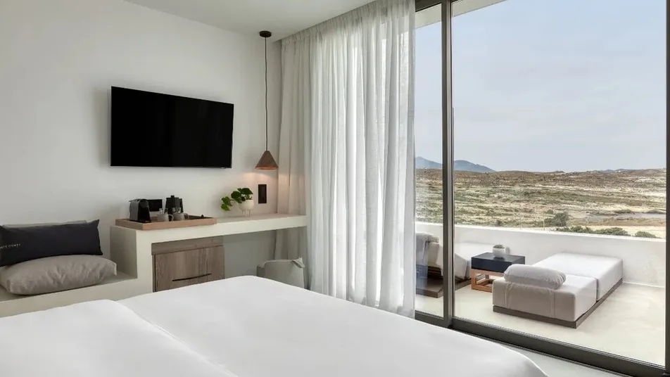 Smeštaj je koncipiran kao ekskluzivna kolekcija 50 apartmana, sa naglaskom na romantiku i komfor. Svaka jedinica je namenjena za 2 odrasle osobe i projektovana tako da maksimalno istakne panoramu mora ili horizonta. U ponudi su različite kategorije apartmana, poput deluxe i superior varijanti, kao i prostraniji „White Coast” apartmani, uz terase za uživanje u zalascima sunca. Posebna odlika je to što apartmani imaju privatne bazene (manje „uronjene” bazene ili standardne privatne bazene), što boravak čini izuzetno intimnim.
