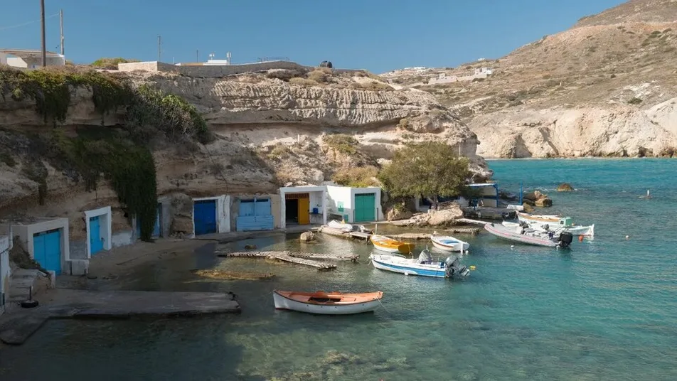 Domes White Coast se nalazi u mestu Mytakas, na ostrvu Milos u Kikladiма, u Grčkoj, na mirnoj beloj obali sa pogledom na Egejsko more i čuvene „mesečeve” stene ovog dela ostrva. Okruženje je prirodno i nenametljivo luksuzno, idealno za one koji žele privatnost i tišinu, a istovremeno dobru polaznu tačku za istraživanje Milosa. Do jedne od najpoznatijih plaža ostrva, Sarakiniko, ima oko 2 km, dok je Kapros plaža približno 1 km udaljena, što omogućava brze izlete do uvala i kupališta.