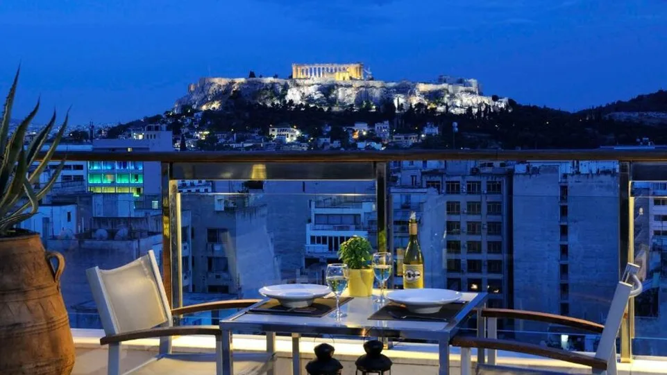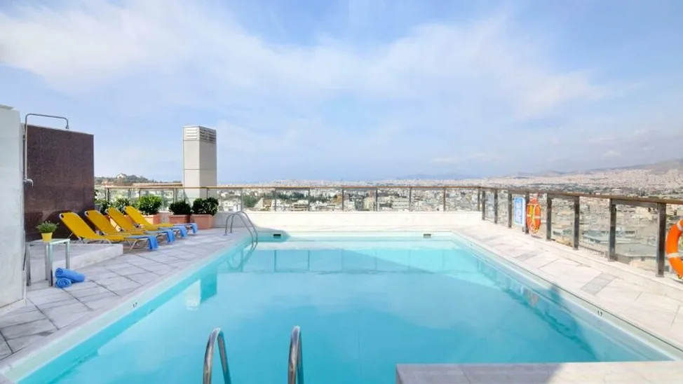 Od sadržaja, hotel nudi otvoreni bazen na krovu sa prelepim panoramskim pogledom na Akropolj i Saronska ostrva, kao i bar pored bazena za osvežavajuće napitke tokom dana i večeri. Glavni hotelski restoran služi bogat grčki doručak i mediteransku kuhinju, dok je na poslednjem spratu dostupan a la kart restoran sa kreativnim jelovnikom. Gostima su na raspolaganju recepcija koja radi 24 sata, menjačnica, bankomat, usluga iznajmljivanja automobila, konferencijske sale za poslovne skupove, lekar na poziv, kao i ležaljke i suncobrani oko bazena za potpuni odmor.