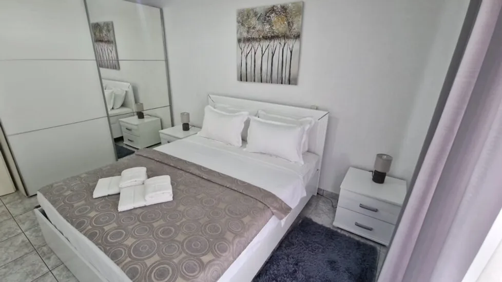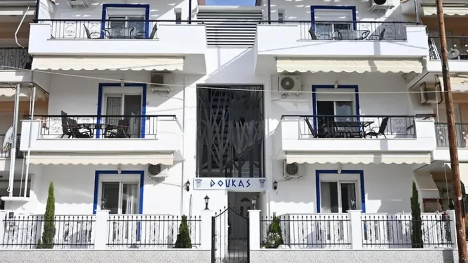 Kao aparthotel kategorizovan sa 3 zvezdice, Doukas nudi intiman kapacitet i komfor apartmanskog boravka. Objekat raspolaže sa 6 smeštajnih jedinica: studijima na prizemlju i apartmanima na spratu, pogodnim za parove, porodice i manje grupe. Studiji imaju funkcionalno opremljenu kuhinju i balkon, a u prostoru su predviđene udobne sofe na razvlačenje, praktične i za decu i za odrasle. Veći apartmani sa dve spavaće sobe pružaju više prostora i mogu da ugoste do 6 osoba, uz dodatnu pogodnost dve terase/balkona.