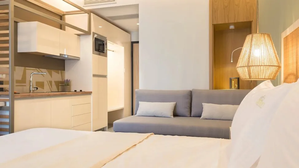 Atmosfera je mirna, uredna i savremena, sa ekološki osmišljenim detaljima i funkcionalnim rešenjima. Eco Green Residences & Suites je idealan za parove koji žele opušten odmor blizu mora, ali i za porodice kojima je važna praktičnost smeštaja, kao i za goste koji planiraju aktivno razgledanje i izlete po Sitoniji. Parking i rentiranje automobila dodatno olakšavaju boravak i kretanje po destinaciji.
