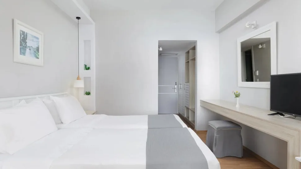 Kao hotel sa 4 zvezdice, Elea Beach Dassia raspolaže sa 216 renoviranih soba u glavnoj zgradi, sa privatnim balkonima. U ponudi su dvokrevetne sobe sa pogledom na more ili planinu Pantokrator, jednokrevetne sobe, kao i porodične sobe koje su praktične za boravak sa decom. Postoje i prostranije trokrevetne varijante, idealne za prijatelje ili manje porodice, uz komforan raspored i prijatan ambijent za odmor.