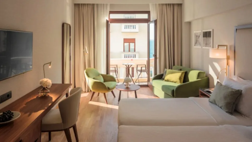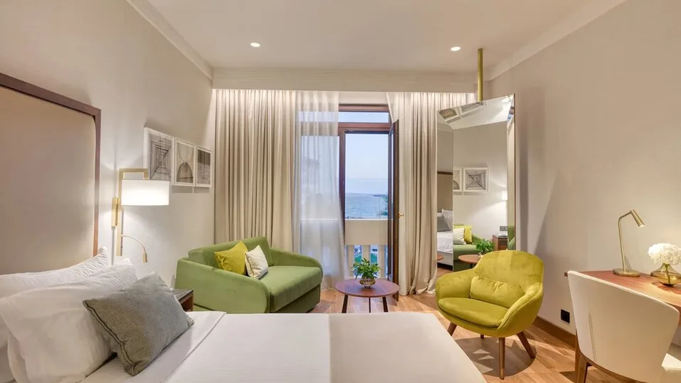 Electra Palace je luksuzni hotel sa 5 zvezdica i ukupno 138 soba i apartmana, osmišljenih u elegantnom, savremenom stilu. U ponudi su klasične i premijum sobe, kao i izvršne sobe sa pogledom na more ili bočnim pogledom, dok su za zahtevnije goste dostupni prostraniji apartmani (uključujući porodične opcije). Smeštajne jedinice primaju do tri osobe u standardnim kategorijama, dok apartmani nude više prostora i komfor za duži boravak.