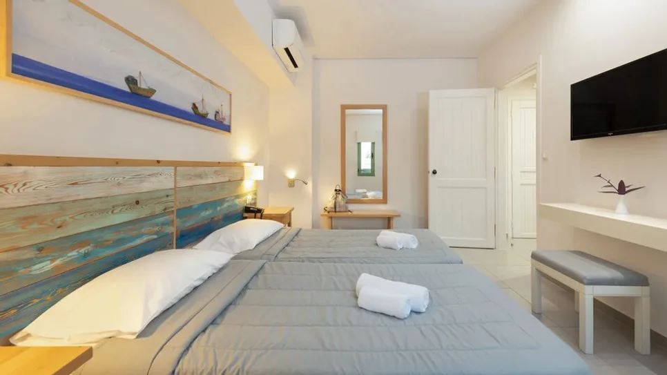 Hotel raspolaže sa oko 60-ak soba, uređenih u modernom mediteranskom stilu, sa toplim bojama i naglaskom na udobnosti. Sve smeštajne jedinice imaju balkon ili terasu, sa pogledom na vrt, planine ili more, što dodatno doprinosi osećaju odmora. Sobe su namenjene boravku dve osobe, idealne su za parove ili prijatelje, opremljene klima-uređajem, televizorom, frižiderom i sopstvenim kupatilom. Zahvaljujući konceptu hotela samo za odrasle, u sobama vlada mirna atmosfera, pogodna za duže boravke i romantične odmore.