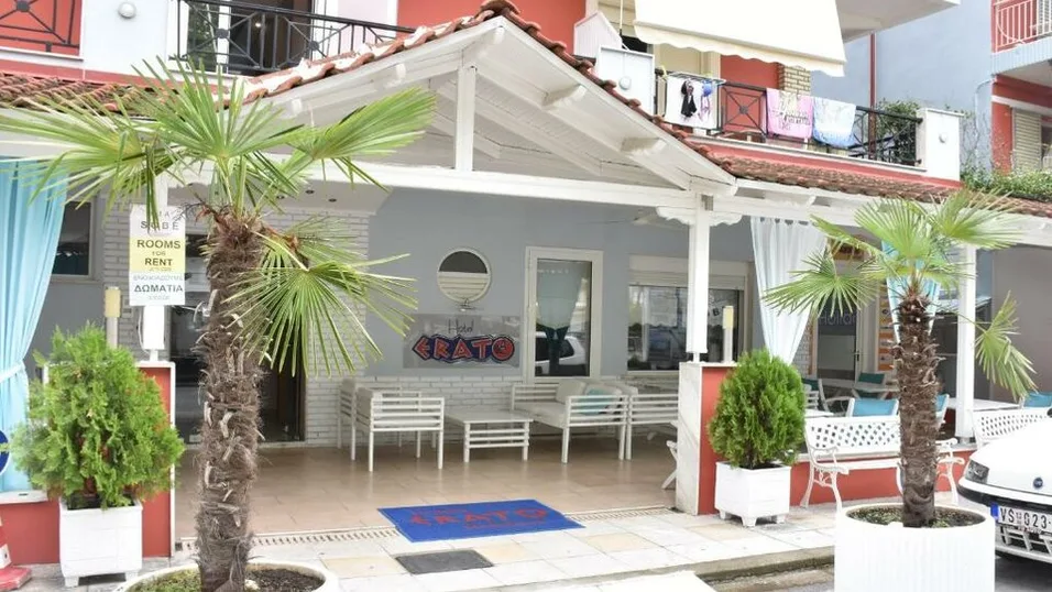 Hotel Erato nalazi se u srcu letovališta Paralia Katerinis, na poznatoj Olimpijskoj rivijeri u Centralnoj Makedoniji, u Grčkoj. Udaljen je svega oko 150 m od duge peščane plaže, do koje se stiže kratkom šetnjom kroz živopisne uličice sa tavernama, kafićima i prodavnicama. Blizina centra mesta čini ga odličnom polaznom tačkom za večernje šetnje i kupovinu, dok je grad Katerini na oko 8 km vožnje. Aerodrom u Solunu udaljen je približno sat i po vožnje, što olakšava dolazak gostiju iz regiona i šire.