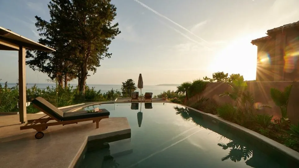 F Zeen Kefalonia – Adults Only je luksuzni hotel kategorije 5 zvezdica, smešten na blagoj padini iznad plaže Lourdas, na ostrvu Kefalonija u Jonskim ostrvima, u Grčkoj. Okružen borovima, maslinama i mediteranskom vegetacijom, pruža predivan pogled na Jonsko more i osećaj potpunog mira. Do šljunkovite, organizovane plaže Lourdas stiže se za svega nekoliko minuta lagane šetnje, na oko 50 m od plaže, dok je centar mesta Lourdata na približno 500 m, sa tavernama i prodavnicama. Glavni grad Argostoli udaljen je oko 17 km, a međunarodni aerodrom Kefalonija približno 15 minuta vožnje. ([hellenic-hotels.com](https://www.hellenic-hotels.com/2017/05/f-zeen.html?utm_source=openai))