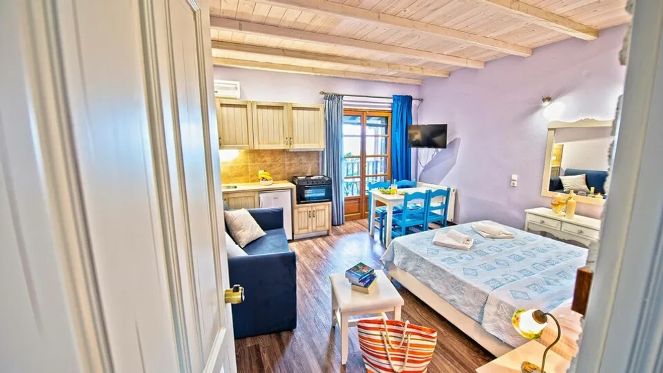Smeštaj u hotelu Flamingo organizovan je u moderno opremljenim studijima i apartmanima. Objekat raspolaže manjim brojem jedinica, što garantuje intimniju atmosferu i mirniji boravak. Svaki studio i apartman ima sopstveno kupatilo, čajnu kuhinju sa osnovnom opremom, klima-uređaj, televizor i balkon ili terasu, najčešće sa pogledom na more ili zelenilo Piliona. Porodice i grupe prijatelja mogu se odlučiti za porodične sobe ili veće apartmane sa dodatnim ležajevima, dok su standardni studiji idealni za parove ili individualne putnike koji traže udoban i funkcionalan smeštaj u blizini plaže.