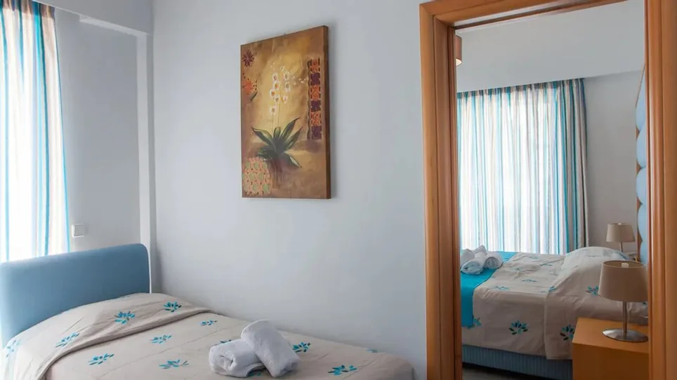 Hotel raspolaže manjim brojem smeštajnih jedinica, što obezbeđuje intimniju atmosferu i mir. Gostima su na raspolaganju standardne dvokrevetne sobe, trokrevetne i četvorokrevetne sobe, kao i apartmani za veći broj osoba, idealni za porodice sa decom. Sve sobe su klimatizovane, moderno uređene, sa kupatilom, frižiderom, televizorom i balkonom, od kojih deo nudi direktan ili bočni pogled na more, a deo gleda na zelenilo i mirno dvorište.