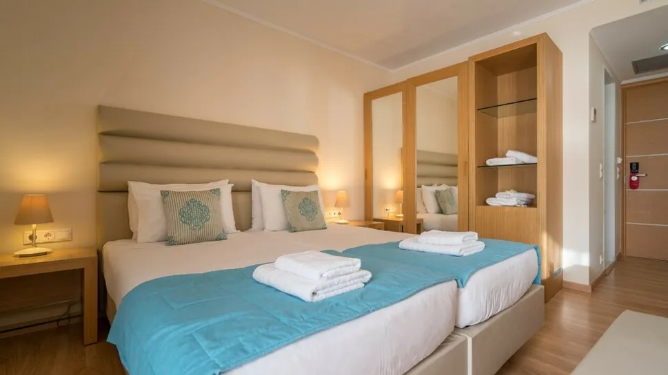 Hotel raspolaže sa oko 120 soba, raspoređenih u nekoliko kategorija: standardne dvokrevetne sobe, prostranije porodične sobe, apartmane i veće apartmane sa dodatnim dnevnim delom. Sobe su moderno uređene u toplim tonovima, većina ima balkon ili terasu sa pogledom na vrt, bazen ili more. Porodične sobe i apartmani predviđeni su za smeštaj roditelja sa jednim ili dvoje dece, dok deo jedinica nudi mogućnost pomoćnog ležaja ili kreveta na sprat, što Galaxy čini praktičnim izborom za veće porodice.