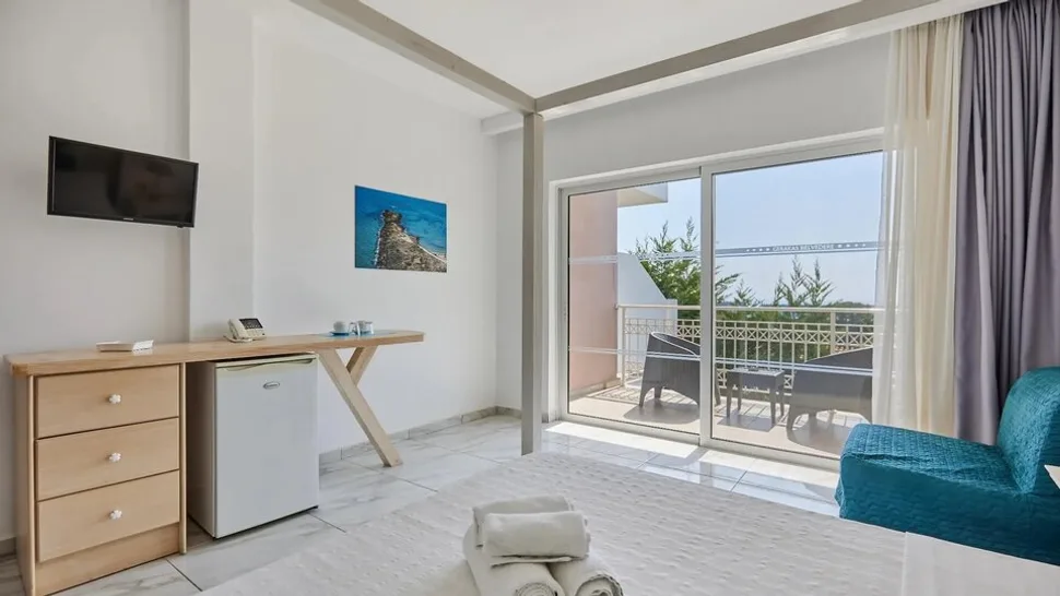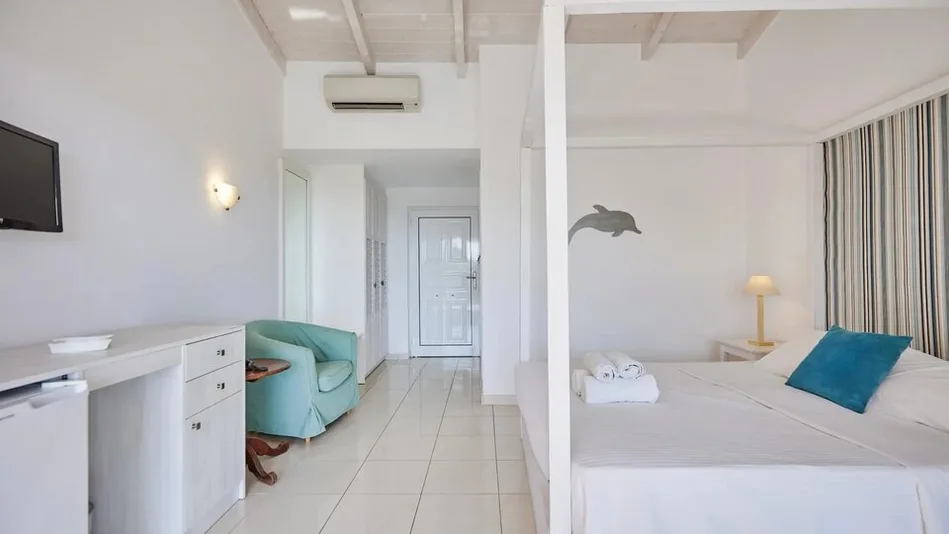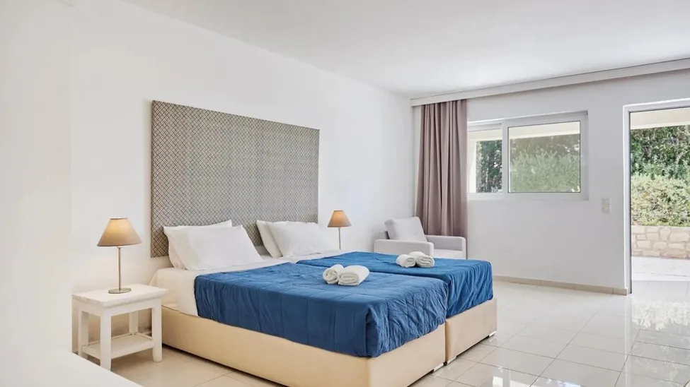 Hotel raspolaže komfornim smeštajnim jedinicama, od standardnih dvokrevetnih soba do prostranijih apartmana, idealnih za porodice ili duže boravke. Sobe su moderno uređene u svetlim tonovima, većina ima balkon ili terasu sa pogledom na vrt ili more, klima-uređaj, televizor sa satelitskim kanalima, frižider, sef i kupatilo sa kadom ili tušem i fenom. U zavisnosti od tipa, sobe mogu primiti od 2 do 4 osobe, pa su pogodne i za parove i za porodice sa decom. Ukupno ima oko 80 soba i apartmana, što obezbeđuje intimniju atmosferu u odnosu na velike hotelske komplekse.