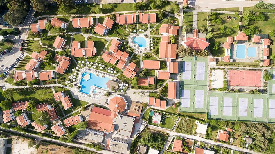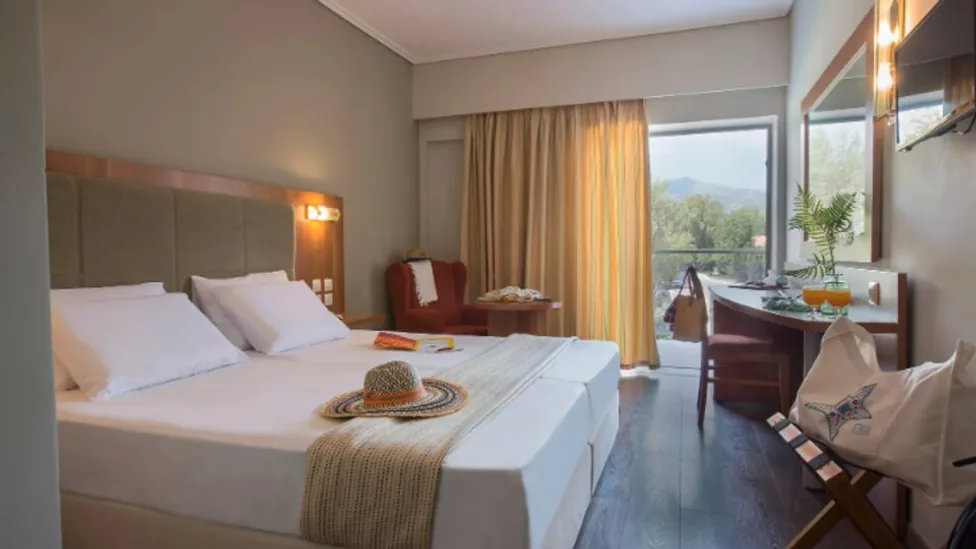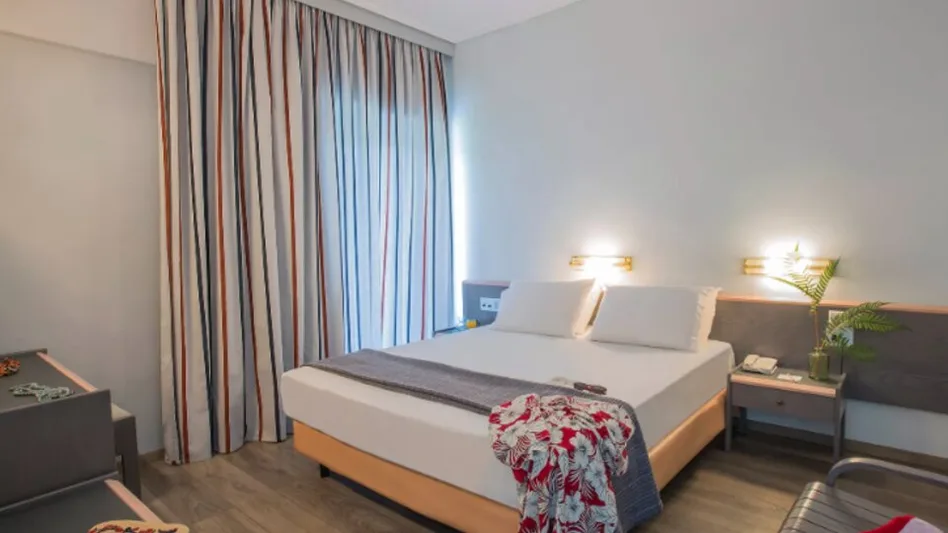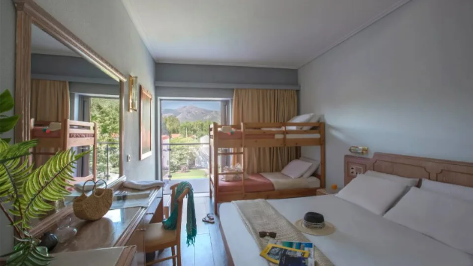Smeštaj je organizovan u glavnoj zgradi i bungalovima raspoređenim po zelenom kompleksu. Hotel raspolaže standardnim dvokrevetnim i trokrevetnim sobama, porodičnim sobama i većim apartmanima, pogodnim za smeštaj roditelja sa dvoje ili troje dece. U ponudi je više od 1200 ležajeva, a sve jedinice su klimatizovane, sa kupatilom, balkonom ili terasom, televizorom i frižiderom, što obezbeđuje komforan boravak i dužim letnjim odmorima. Veći apartmani nude dodatni prostor za sedenje i odvojenu spavaću zonu, što je naročito praktično za porodice.