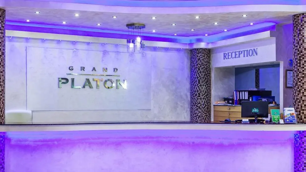 Grand Platon nudi veliki spoljašnji bazen sa izdvojenim dečjim bazenom, okružen prostranom terasom za sunčanje. Gostima su na raspolaganju glavni restoran sa uslugom obroka na bazi švedskog stola, restoran sa jelovnikom pored bazena, taverna na plaži, bar u lobiju i bar pored bazena. Za aktivan odmor tu su teren za odbojku na pesku, organizovana plaža, usluga iznajmljivanja automobila, kao i dečje igralište. Hotel poseduje konferencijsku salu za poslovne skupove, parking, bankomat, menjačnicu i uslugu lekara na poziv.