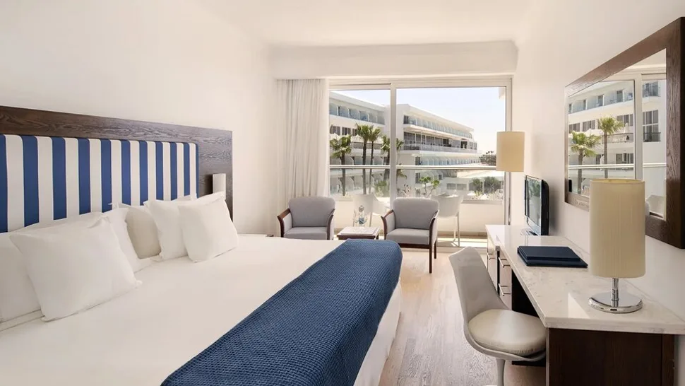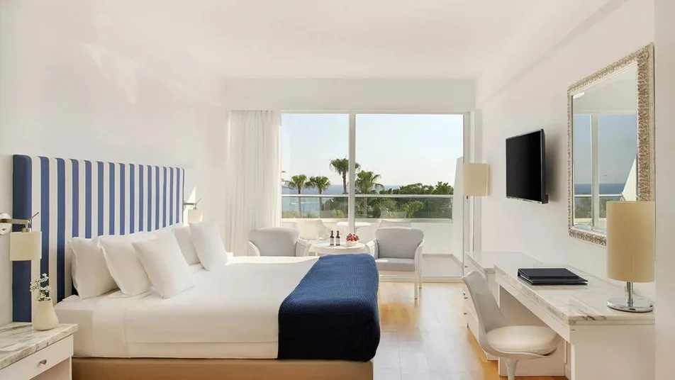 Hotel raspolaže sa oko 140–220 soba različitih tipova, od standardnih soba sa pogledom na kopno, preko soba sa bočnim ili direktnim pogledom na more, do prostranijih apartmana namenjenih zahtevnijim gostima i porodicama. Sve smeštajne jedinice su moderno uređene u toplim, prirodnim tonovima, klimatizovane i opremljene mini-barom, televizorom, priborom za pripremu kafe i čaja, kao i balkonom ili terasom sa garniturom za sedenje. U većini soba mogu boraviti do tri osobe, dok porodične sobe i apartmani nude dodatni prostor za udoban boravak sa decom. ([britishairways.com](https://www.britishairways.com/en-de/destinations/hotel-information/Ayia-Napa/Grecian-Sands/CY-QNP-3721616?utm_source=openai))