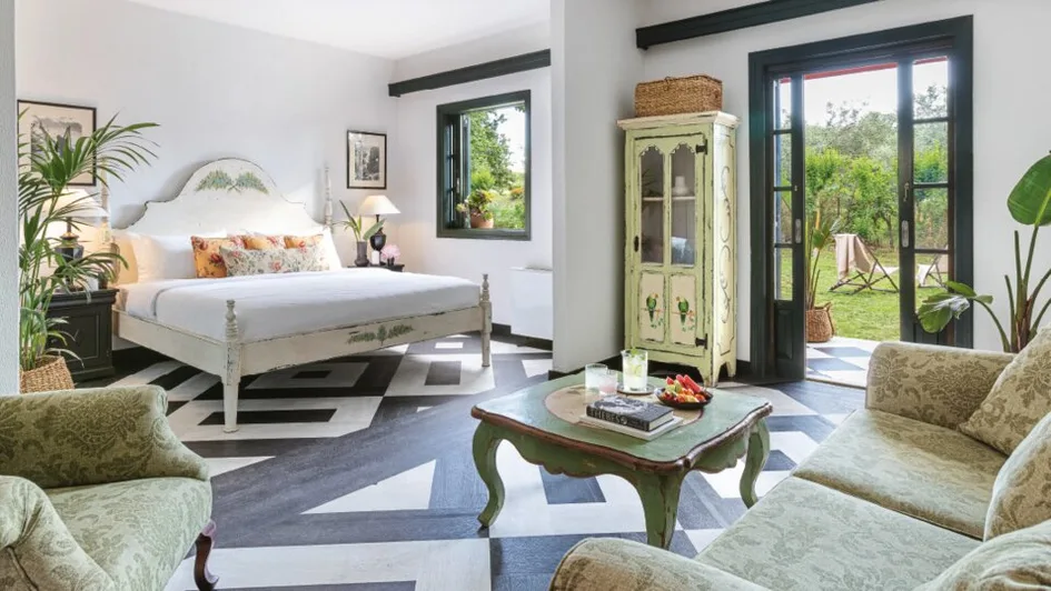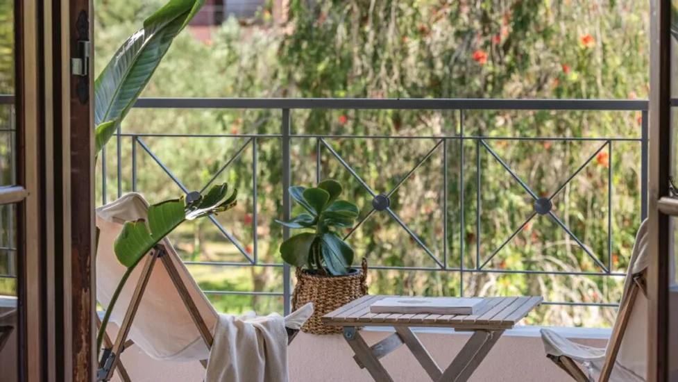 Smeštaj je organizovan u više „seoskih“ i „letnjih“ kuća, raspoređenih među vrtovima, što resortu daje utisak malog grčkog sela. Gostima su na raspolaganju različiti tipovi soba i apartmana, od udobnih dvokrevetnih soba za parove do prostranih porodičnih soba i većih apartmana, koji mogu da prime višečlane porodice. Ukupan kapacitet je veliki, ali raspored po manjim zgradama obezbeđuje osećaj privatnosti i mira. Moderne sobe su elegantno uređene u mediteranskom stilu, sa balkonima ili terasama, klimatizacijom, bogato opremljenim mini barom i sadržajima prilagođenim konceptu odmora tipa sve uključeno. ([grecotel.com](https://www.grecotel.com/resort-costabotanica/?utm_source=openai))