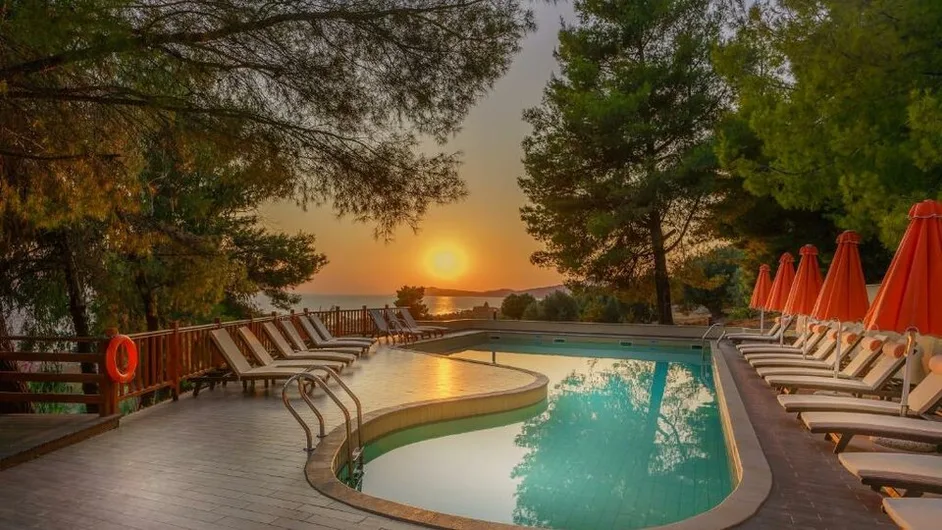Greek Pride Cronwell Rahoni je butik hotel kategorije 5 zvezdica, smešten u mirnom delu letovališta Nea Skioni, na Halkidikiju, u Grčkoj. Nalazi se iznad magistrale, u zelenilu borove šume, sa prelepim pogledom na zaliv i zalaske sunca. Plaža je udaljena oko 300 m od hotela, a gostima je obezbeđen prevoz hotelskim minibusom do plažnog bara i organizovanog dela obale sa ležaljkama i suncobranima. Centar Nea Skionija sa tavernama i prodavnicama nalazi se na nekoliko minuta vožnje, dok je aerodrom u Solunu udaljen oko 140 km od hotela, što ovaj objekat čini pogodnim za goste koji traže mir, ali i dobru povezanost sa okolinom. ([tui.hu](https://www.tui.hu/hotel/gorogorszag/halkidiki/rahoni-cronwell-park-hotel?utm_source=openai))