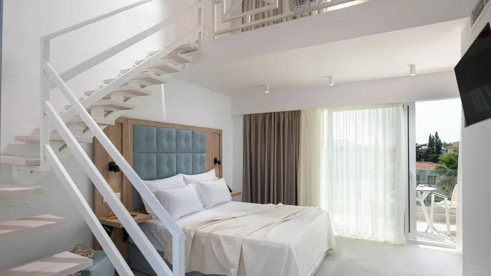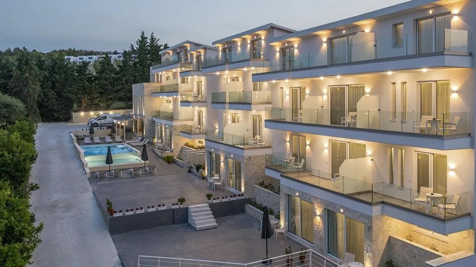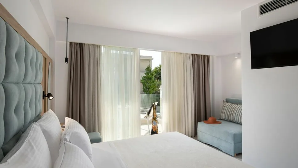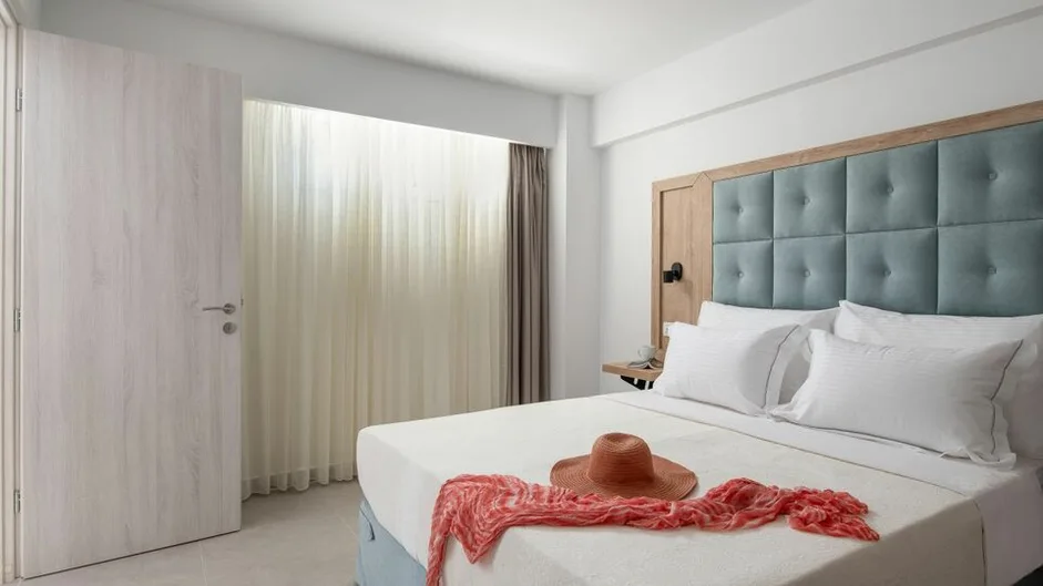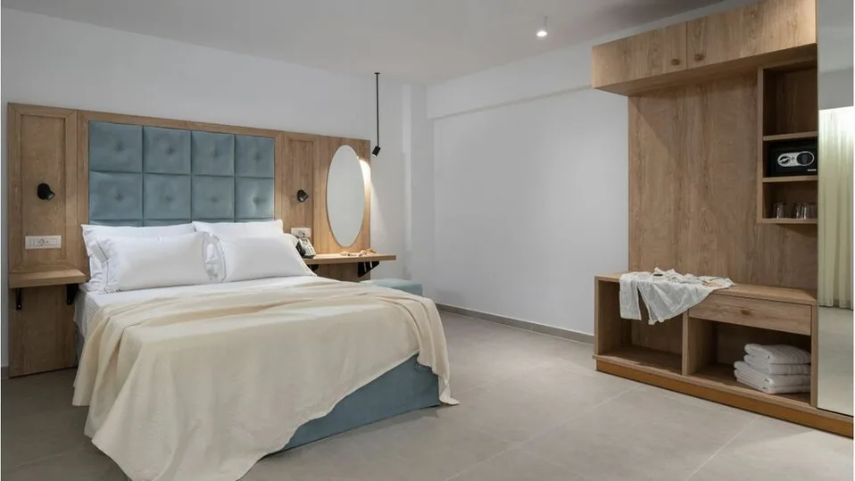 Smeštaj u hotelu organizovan je u komfornim dvokrevetnim i trokrevetnim sobama, kao i u prostranijim porodičnim apartmanima. Sve jedinice su moderno uređene, sa pažljivo odabranim detaljima u svetlim tonovima, što stvara prijatnu i opuštajuću atmosferu. Svaka soba ima kupatilo, klima-uređaj, televizor, frižider i balkon ili terasu, a pojedine smeštajne jedinice nude pogled na bazen ili uređeno dvorište. Porodični apartmani su idealni za goste koji putuju sa decom, jer obezbeđuju dodatni prostor i udobnost, pa su porodične sobe jedan od najtraženijih tipova smeštaja u hotelu.