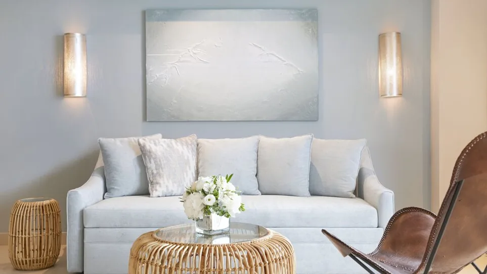 Hotel raspolaže sa oko 411 soba i apartmana, uređenih u savremenom mediteranskom stilu, u svetlim tonovima bele i plave boje. Gostima su na raspolaganju standardne i superior dvokrevetne sobe sa pogledom na baštu ili more, prostrane porodične sobe sa dve međusobno povezane jedinice, kao i razni tipovi apartmana sa odvojenom spavaćom sobom i dnevnim boravkom. Veći apartmani primaju do četiri ili pet osoba, što je idealno za porodice sa decom ili grupe prijatelja. Sve jedinice imaju balkon ili terasu, klima-uređaj, moderno kupatilo i savremenu opremu, uz pažljivo osmišljene detalje za maksimalnu udobnost.