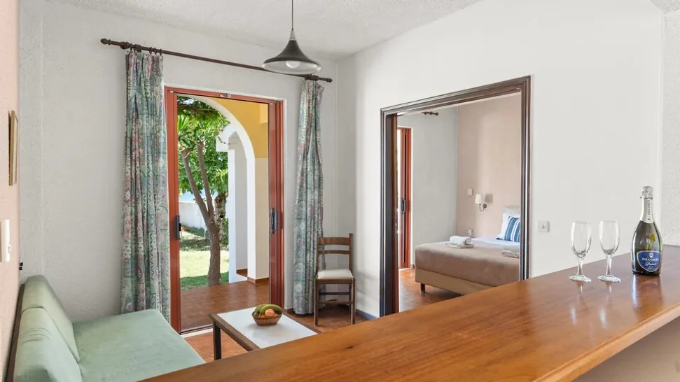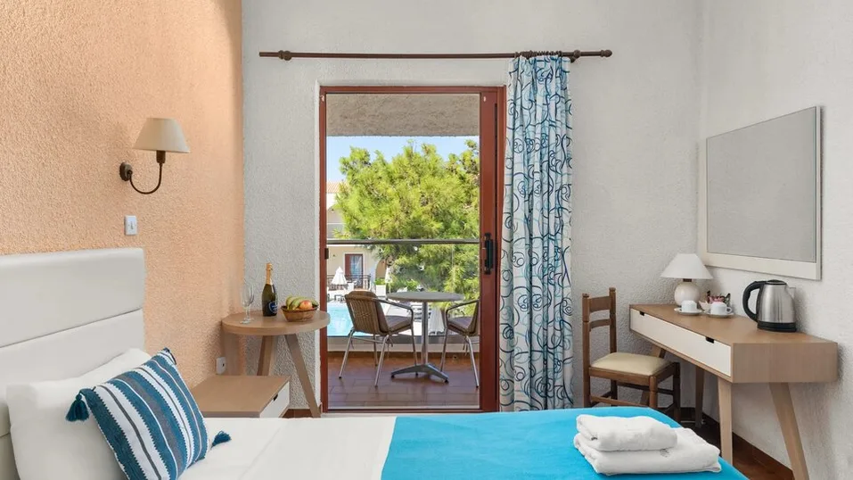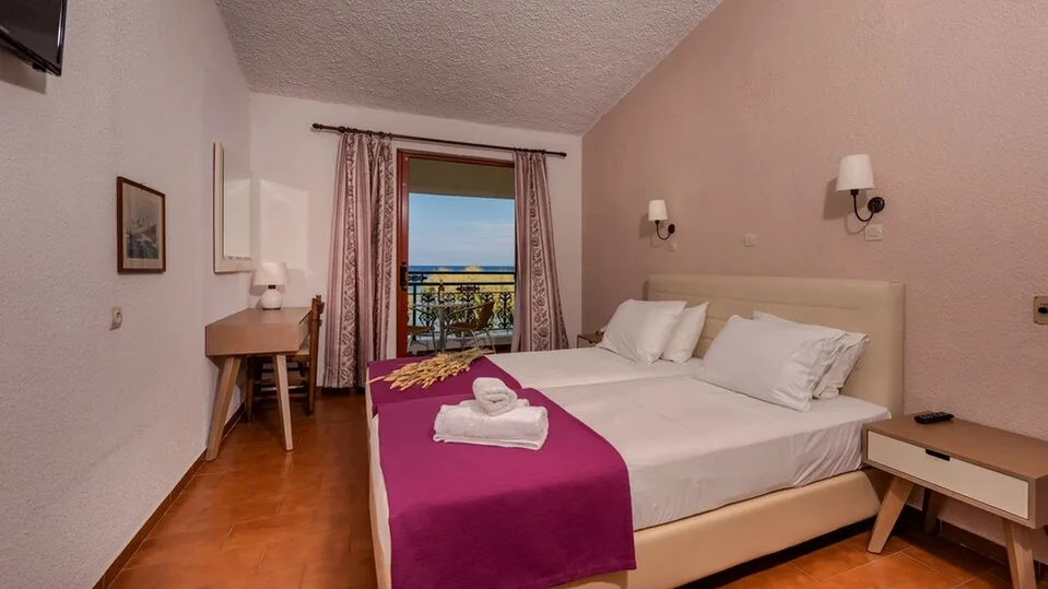 Hotel nudi udobne i funkcionalno uređene sobe, većinom sa balkonom i pogledom na more, bazen ili okolinu. U ponudi su dvokrevetne sobe, smeštaj za trokrevetne kombinacije, kao i praktičnije porodične opcije, pa objekat može da ugosti i parove i porodice sa decom. Sve sobe su klimatizovane, imaju kupatilo, frižider, sef, televizor i bežični internet. Ukupan kapacitet hotela je oko 70 soba, što obezbeđuje prijatnu, intimniju atmosferu u odnosu na velike komplekse.