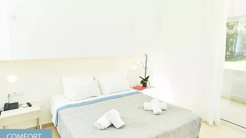 Hotel raspolaže sa ukupno 20 soba, uređenih u modernom, minimalističkom stilu. Gostima su na raspolaganju komforne dvokrevetne sobe sa pogledom na bazen ili baštom, kao i deluxe dvokrevetne sobe sa delimičnim pogledom na more ili bazen. Sve smeštajne jedinice su klimatizovane, opremljene francuskim ležajem, sopstvenim kupatilom sa tušem i fenom, mini frižiderom, sefom, televizorom i balkonom ili terasom, najčešće sa stolom i stolicama za uživanje na otvorenom. Kapacitet soba je namenjen pre svega parovima, što dodatno naglašava intimnu i mirnu atmosferu hotela. ([grecia.directbooking.ro](https://grecia.directbooking.ro/cazare-inspira-boutique-hotel-adults-only-thassos-oferta-rezervare-sejur-2323201.aspx?utm_source=openai))