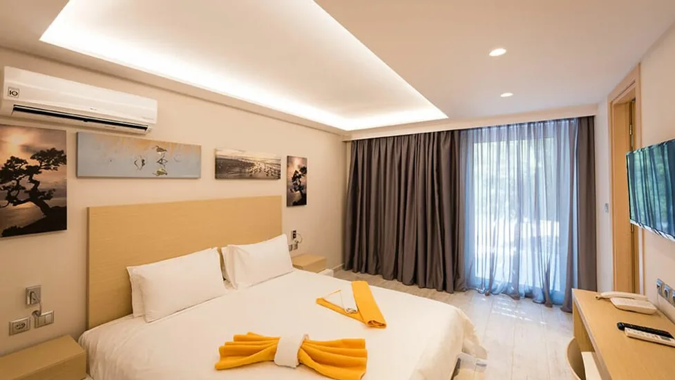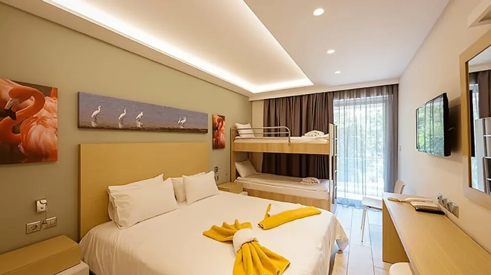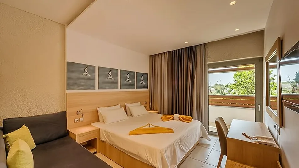 Smeštaj u hotelu organizovan je u komfornim sobama različitih tipova, prilagođenim parovima, porodicama i manjim grupama. Moderne sobe su funkcionalno uređene, sa balkonima ili terasama, od kojih mnoge nude pogled na more, bazen ili zelenilo. Udobni kreveti, klimatizacija, kupatilo sa tušem i osnovnim toaletnim priborom, kao i svakodnevno održavanje higijene, obezbeđuju prijatan boravak. U ponudi su standardne dvokrevetne i trokrevetne sobe, kao i porodične sobe za goste koji putuju sa decom, sa kapacitetom do četiri osobe, što hotel čini pogodnim za duži odmor.