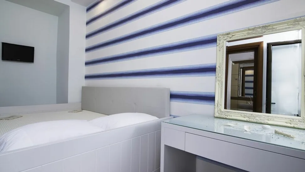 Ovaj manji, porodični hotel kategorije 2 zvezdice raspolaže sa svega 14 komfornih, klimatizovanih soba, raspoređenih na dva sprata, što garantuje intimnu i mirnu atmosferu. Svaka soba ima sopstveno kupatilo i balkon sa pogledom na more, ili kombinacijom pogleda na more i okolne planine. Sobe su predviđene za boravak od jedne do tri osobe, pa su podjednako pogodne za parove koji putuju udvoje i manje porodice sa detetom. U sobama se nalaze televizor sa satelitskim kanalima, mini frižider i fen za kosu, a gostima je na raspolaganju i bežični internet u sobama.