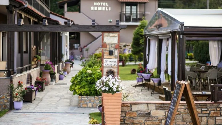 Atmosfera u hotelu je opuštena, domaćinska i autentično grčka, sa naglaskom na ličnu uslugu i gostoprimstvo. Uređenje je jednostavno, ali ukusno, sa mnogo zelenila i cveća u dvorištu koje vodi pravo do plaže sa ležaljkama i suncobranima. Zahvaljujući položaju uz more i mirnom okruženju, Kamelia je odličan izbor za parove koji traže romantičan beg, ali i za manje porodice koje žele sigurno i plitko more za decu. Zbog dobrog pristupa glavnom putu oko ostrva, hotel je pogodan i za putnike koji žele da iznajme automobil i istraže Tasos u sopstvenom ritmu.