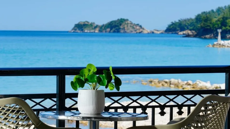 Hotel Kamelia se nalazi u mirnom delu letovališta Skala Potamias, na ostrvu Tasos, u istočnoj Makedoniji, u Grčkoj. Smešten je u prelepoj mediteranskoj bašti, tik uz poznatu peščanu Golden Beach, praktično na samoj plaži, sa direktnim pristupom moru i pogledom na zaliv. Skala Potamias nudi šetalište sa tavernama, kafićima i prodavnicama na svega nekoliko minuta lagane šetnje, dok je glavni grad ostrva, Limenas, udaljen oko 15 minuta vožnje automobilom. Do Tasosa se lako stiže trajektom iz Keramotija, a najbliži aerodrom je u Kavali, odakle se nastavlja kratkom vožnjom i trajektnom linijom.