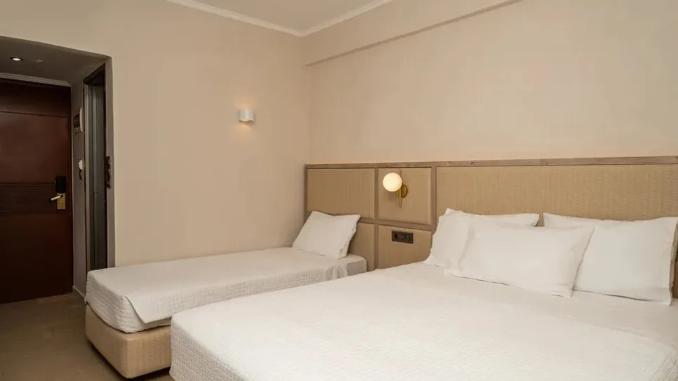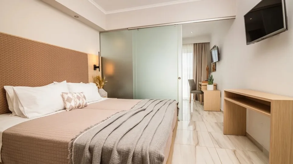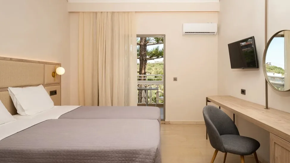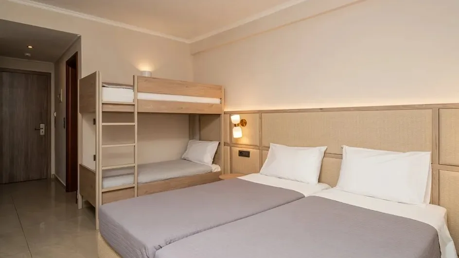 Hotel nudi više tipova smeštaja, od standardnih dvokrevetnih soba do prostranih porodičnih jedinica. Sobe su moderno uređene, klimatizovane, sa balkonom, mini frižiderom i televizorom, a deo soba prilagođen je osobama sa smanjenom pokretljivošću. Porodicama su posebno namenjene porodične sobe i apartmani, koji mogu da ugoste do četiri osobe, uz mogućnost dodatnog dečjeg kreveca na zahtev. Sobe su osmišljene tako da pruže udobnost nakon celodnevnog boravka na plaži ili izletima po ostrvu.