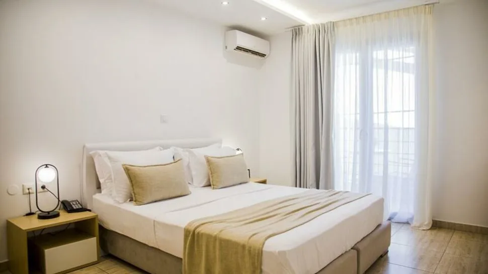 Hotel nudi moderno uređene dvokrevetne, trokrevetne i porodične sobe, uključujući i komforne četvorokrevetne jedinice, pogodne za smeštaj porodica sa decom ili manjih društava. Većina soba ima balkon, a deo njih pruža lep pogled na more, što dodatno upotpunjuje ugođaj boravka. Sobe su klimatizovane i opremljene savremenim sadržajima kao što su televizor, frižider ili mini-bar, kupatilo sa tušem i toaletnim priborom, kao i bežični internet. Udobni ležajevi i pažljivo održavanje doprinose prijatnom i opuštajućem odmoru posle dana provedenog na plaži.