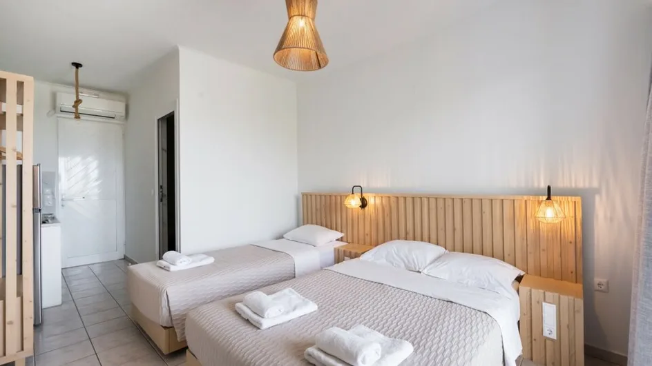 Kastro Maistro je prijatan hotel sa 3 zvezdice, smešten u mirnoj regiji Agios Ioannis na ostrvu Lefkada, u Jonskim ostrvima u Grčkoj. Nalazi se na blagom uzvišenju, okružen zelenilom i maslinjacima, sa lepim pogledom na more i zaliv. Plaža Agios Ioannis sa poznatim vetrom idealnim za surfovanje udaljena je oko 600–700m od plaže, dok je živopisni grad Lefkas na oko 1,5–2km, lako dostupan kolima ili kraćom vožnjom taksijem. Najbliže prodavnice i pekare nalaze se u obližnjem naselju Frini, a aerodrom Aktion kod Preveze udaljen je oko 30 minuta vožnje od aerodroma. Lokacija je odlična polazna tačka za obilazak zapadne obale Lefkade i njenih najpoznatijih plaža.