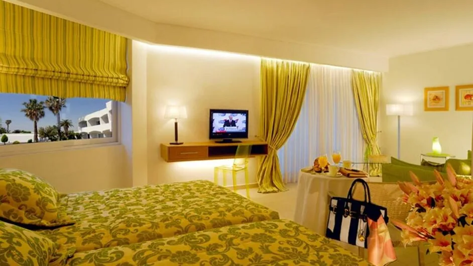 Hotelski kompleks raspolaže sa oko 250 soba različitih tipova, raspoređenih u glavnoj zgradi i bungalovima u vrtu. Gostima su na raspolaganju standardne i superior dvokrevetne sobe, porodične sobe sa dodatnim ležajevima, kao i prostraniji apartmani sa odvojenim dnevnim delom, idealni za veće porodice ili zahtevnije goste. Sve smeštajne jedinice su klimatizovane, imaju balkon ili terasu, kupatilo sa kadom ili tušem, frižider, televizor i bežični internet, a deo soba nudi i predivan pogled na more.