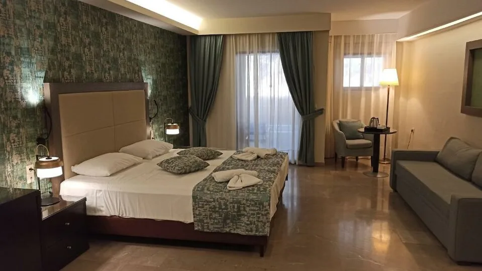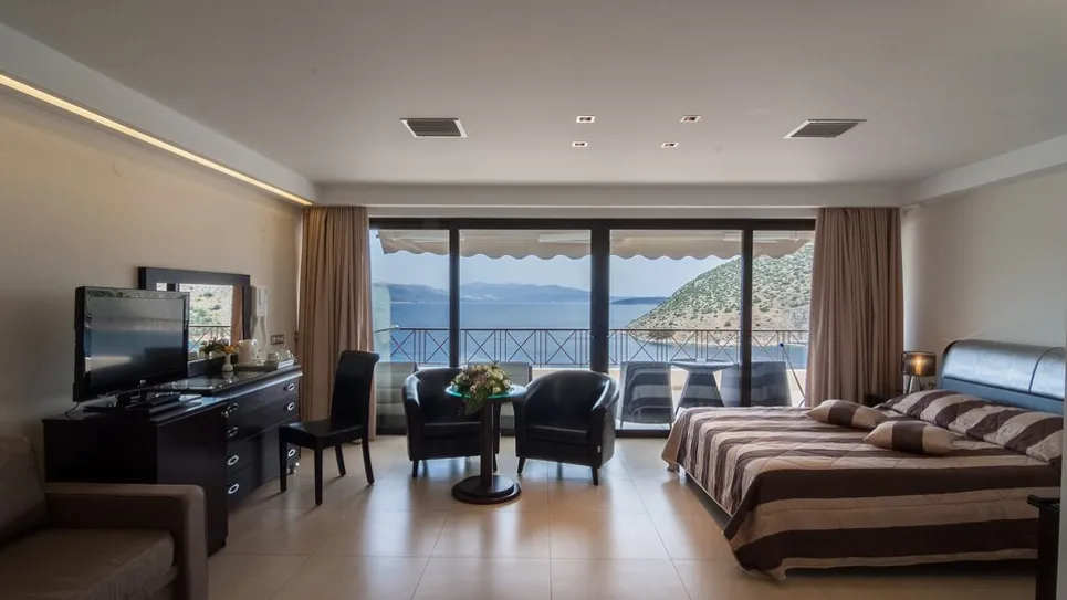 Smeštaj u hotelu čine komforne dvokrevetne i trokrevetne sobe, kao i prostraniji apartmani sa pogledom na more ili planinu. Sve jedinice su klimatizovane, sa sopstvenim kupatilom, balkonom, televizorom i bežičnim internetom, a deo soba može da ugosti porodice sa jednim ili dvoje dece. Ukupan kapacitet hotela je organizovan tako da obezbedi dovoljno privatnosti i mir, pa se i u periodu veće popunjenosti zadržava prijatna, nepretrpana atmosfera. Za goste koji traže više prostora preporučuju se porodične sobe i veći apartmani sa panoramskim pogledom na zaliv.