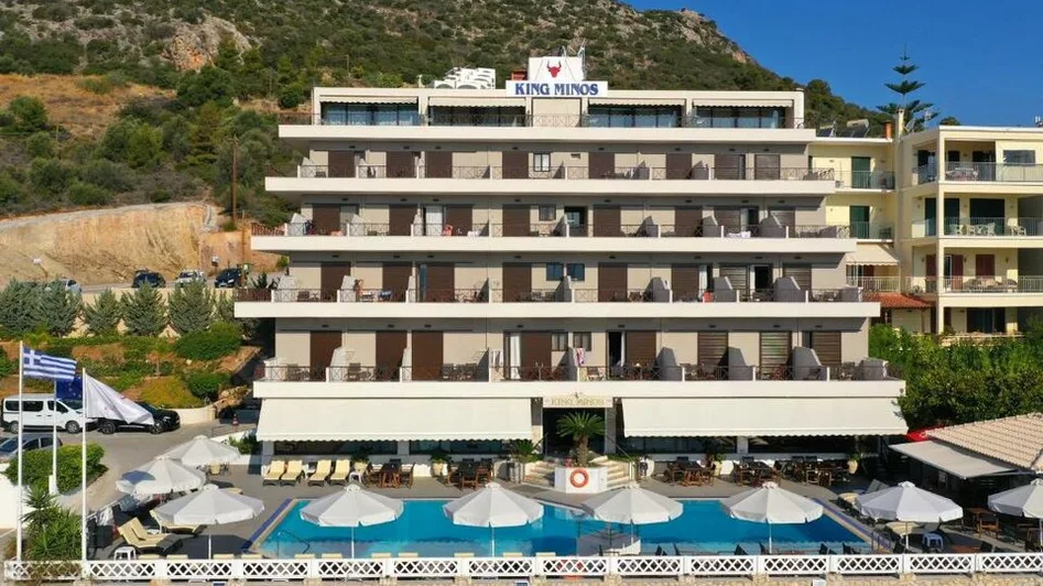 Hotel King Minos je udoban objekat sa 4 zvezdice, smešten na uzvišenju iznad letovališta Tolo, na poluostrvu Peloponez, u Grčkoj. Zahvaljujući položaju na blagom brežuljku, pruža se prelep panoramski pogled na zaliv i ostrvca u blizini. Mirniji deo mesta obezbeđuje opušten boravak, dok se centar Tola sa tavernama, prodavnicama i barovima nalazi na svega nekoliko minuta hoda. Najbliža peščana plaža dostupna je kratkom šetnjom nizbrdo, što gostima omogućava da lako kombinuju dane na moru sa večernjim izlascima u mestu.