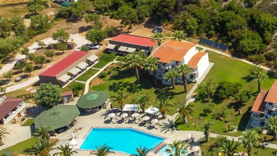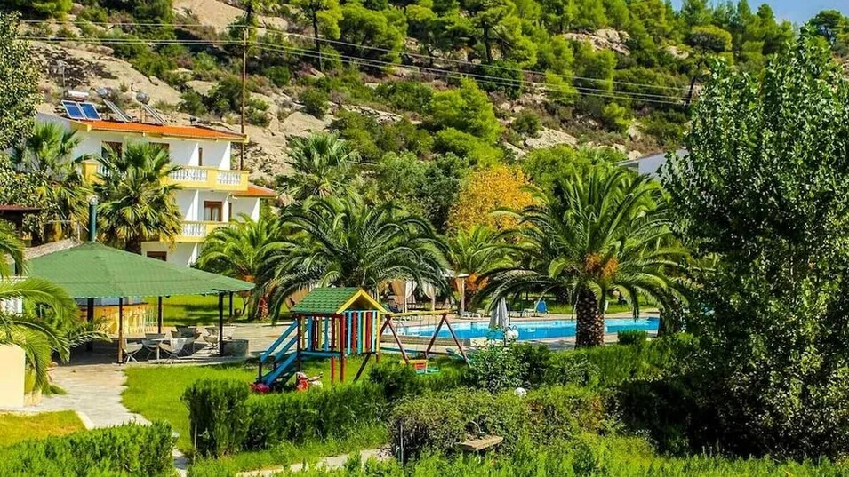 Koviou Holiday Village je prijatan porodični hotel sa 3 zvezdice, smešten usred maslinjaka i bujne mediteranske vegetacije, na zapadnoj obali Sitonije, u blizini Nikitija, na Halkidikiju, u Grčkoj. Nalazi se na oko 6 km od Nikitija i 13 km od živopisnog Neos Marmarasa, dok je aerodrom u Solunu udaljen približno 90 km, što gostima omogućava jednostavan transfer. Do prelepe peščane plaže Akti Koviou, poznate po tirkiznom moru i borovima koji pružaju prirodan hlad, stiže se za svega 5 minuta hoda, kroz podzemni prolaz ispod glavnog puta, što dodatno povećava bezbednost gostiju.