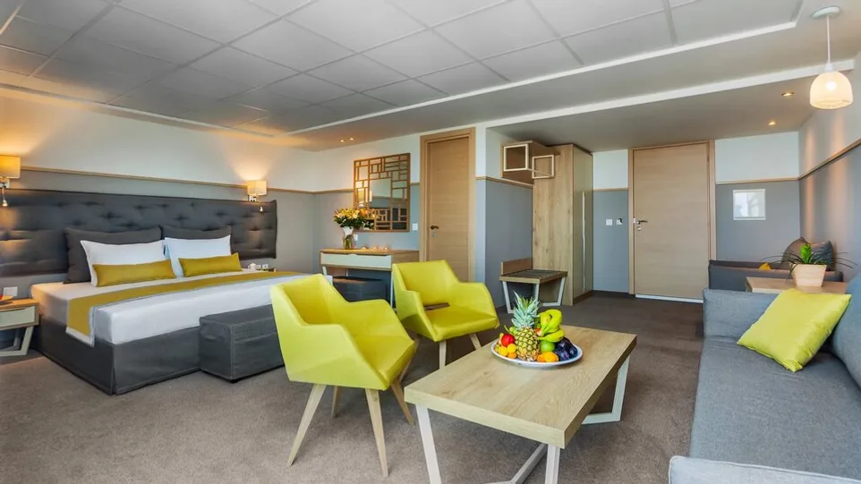 U okviru hotela nalaze se glavni restoran, kao i a la kart restoran za goste koji žele posebna gastronomska iskustva. Kompleks poseduje veliki spoljni bazen, dečji bazen, bar pored bazena, teretanu, kao i spa centar sa tretmanima za telo i lice, masažama i zonom za opuštanje. Za najmlađe tu su dečji bazen, dečje igralište i organizovana dečja animacija, dok večernji program i animacija za odrasle upotpunjuju boravak. Gostima su na raspolaganju bankomat, usluga iznajmljivanja automobila, bilijar, kao i peškiri za plažu.