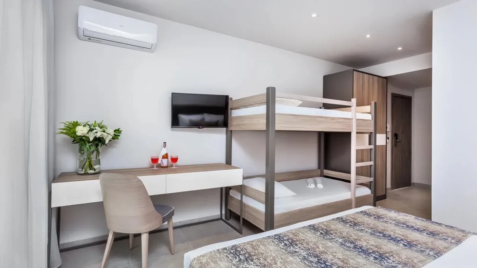 Smeštaj u hotelu Kriopigi osmišljen je tako da zadovolji različite tipove putnika. Na raspolaganju su standardne i superior dvokrevetne sobe, prostranije porodične sobe, kao i elegantni apartmani sa pogledom na more. Većina jedinica poseduje balkon ili terasu, klimatizaciju, savremeno opremljeno kupatilo i sve što je potrebno za udoban boravak. Hotel raspolaže sa više kategorija soba, pa gosti mogu birati između intimnijih dvokrevetnih i komfornijih porodičnih opcija, idealnih za smeštaj roditelja sa decom.