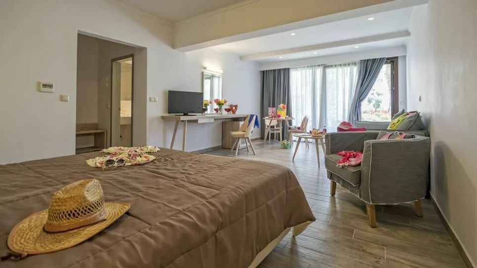 Hotel nudi bogat izbor sadržaja i usluga za opuštanje i rekreaciju. Centralni bazen sa odvojenim dečjim bazenom okružen je ležaljkama i suncobranima, dok je na plaži gostima na raspolaganju organizovan prostor sa ležaljkama i suncobranima, peškirima za plažu i teren za odbojku na pesku. Glavni restoran u formi bifea služi raznovrstan doručak i večeru, dok a la kart restoran – tradicionalna taverna uz more – nudi specijalitete grčke kuhinje, svežu ribu i lokalna vina. U okviru kompleksa nalaze se barovi, bankomat, gimnastička sala, kao i spa centar u sestrinskom hotelu, gde se mogu rezervisati tretmani za telo i lice. Posebna pažnja posvećena je najmlađima kroz animaciju, dečje igralište i dnevne i večernje programe.