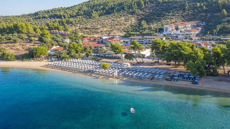 Lagomandra Beach&Suites je elegantan hotel sa 4 zvezdice, smešten u mirnom zalivu Lagomandra, na Sitoniji, na Halkidikiju, u Grčkoj. Nalazi se oko šest kilometara od živopisnog letovališta Neos Marmaras, pa gosti lako kombinuju mir odmora sa večernjim izlascima u mestu. Hotel je pozicioniran u zelenilu borove šume, svega oko 200–250 m od plaže sa Plavom zastavicom, do koje se stiže bezbednim nadvožnjakom iznad magistrale. Lagomandra je poznata po bistrom moru i dugoj peščanoj obali, idealnoj za porodično kupanje i šetnje uz zalazak sunca.