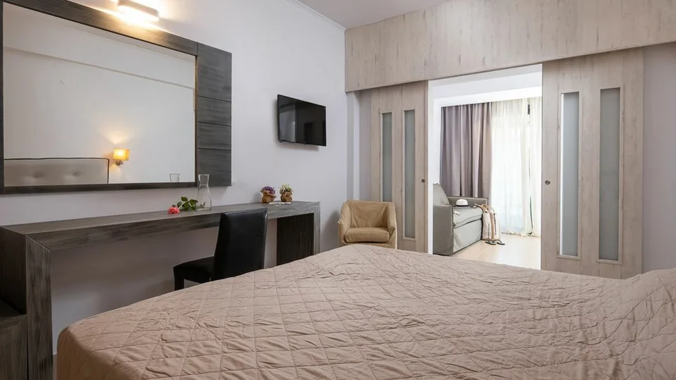 Hotel raspolaže sa oko 120 soba, renoviranih i moderno uređenih, prilagođenih različitim potrebama gostiju. U ponudi su dvokrevetne Deluxe sobe, porodične Deluxe sobe, apartmani i veći apartmani, kao i mezonete sa pogledom na more. Kapaciteti soba se kreću od 2 do 4–5 osoba, u kombinaciji standardnih ležajeva i sofa na razvlačenje, što omogućava udoban smeštaj i parovima i porodicama sa decom. Sve smeštajne jedinice imaju klima-uređaj, televizor sa satelitskim kanalima, frižider, sef, balkon ili terasu, kao i moderno opremljena kupatila.