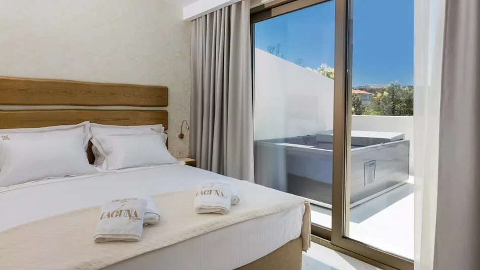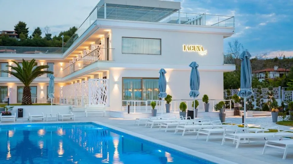 Laguna Resort je luksuzni hotel kategorije 5 zvezdica, smešten u šarmantnom letovalištu Hanioti, na prvom prstu Halkidikija – Kasandri, u Grčkoj. Nalazi se u mirnijem delu mesta, uz lepo uređen deo obale sa sopstvenim ležaljkama i suncobranima, idealan za goste koji žele da uživaju u kristalno čistom moru i dugim šetnjama pored plaže. Centar Haniotija, sa tavernama, prodavnicama i kafićima, lako je dostupan prijatnom šetnjom, dok se aerodrom u Solunu nalazi na oko 60–70 minuta vožnje, što ovaj hotel čini odličnim izborom za letovanje bez stresa.
