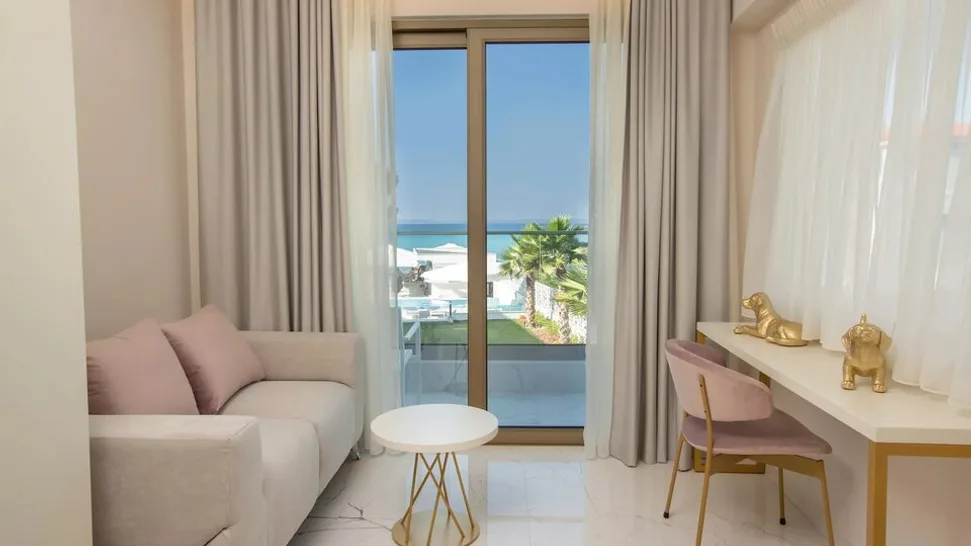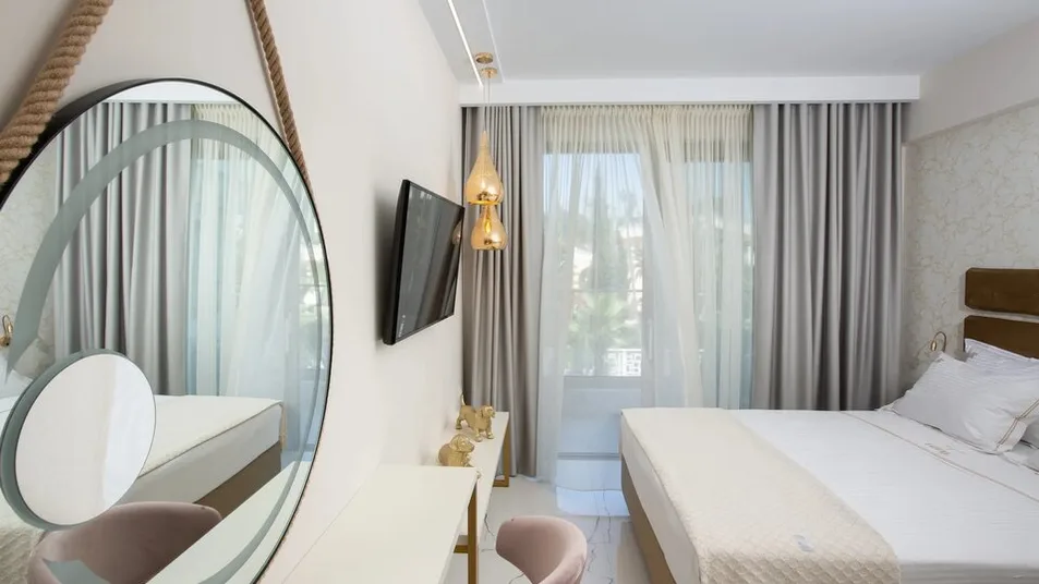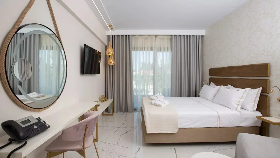 Hotelski kompleks raspolaže moderno uređenim sobama i apartmanima, prilagođenim parovima, porodicama i manjim grupama. Gosti mogu birati između standardnih i superior soba, kao i prostranijih apartmana, od kojih mnoge imaju pogled na more ili bazen. Smeštajne jedinice su klimatizovane, sa balkonom ili terasom, savremenim kupatilom, televizorom i bežičnim internetom, a kapaciteti soba su prilagođeni za boravak od dvoje odraslih do porodica sa jednim ili dvoje dece. Ukupni broj smeštajnih jedinica je ograničen, što obezbeđuje intimniju atmosferu i mirniji boravak.