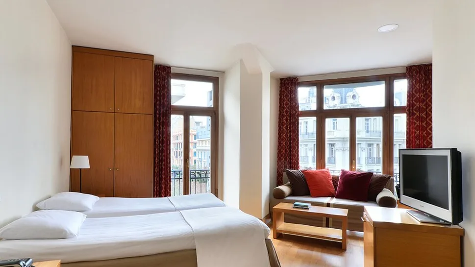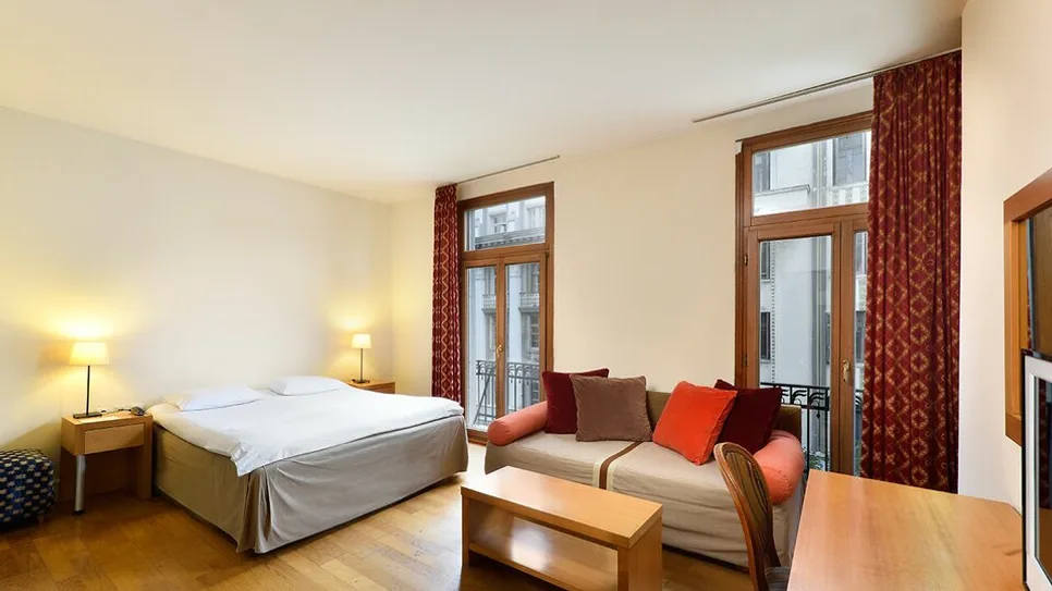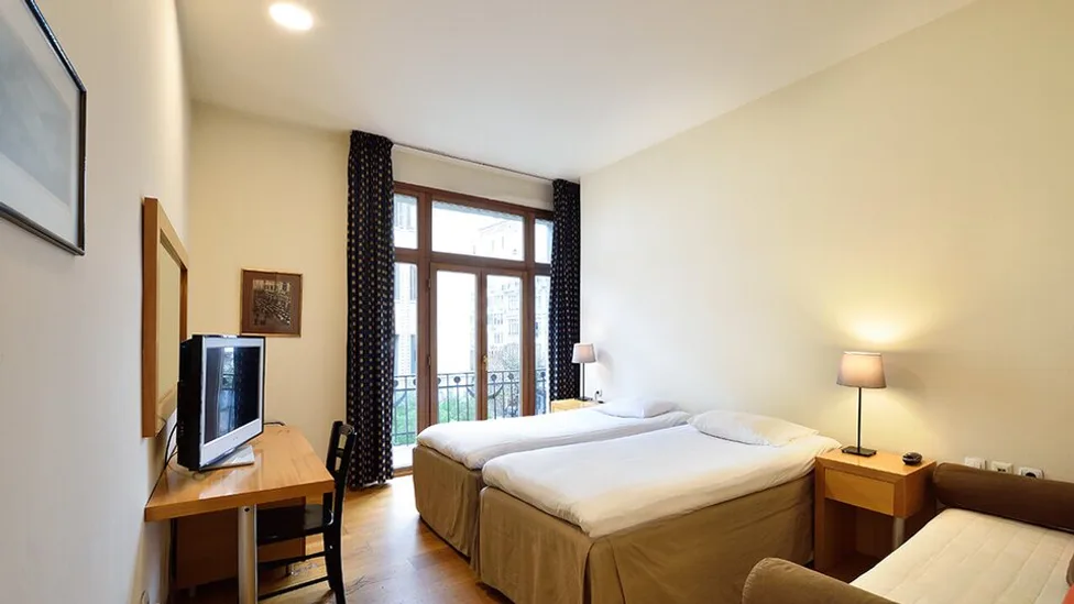 Hotel raspolaže sa oko 50–60 soba, uređenih u duhu neoklasične arhitekture, sa visokim plafonima i drvenim podovima. Na raspolaganju su jednokrevetne i dvokrevetne sobe, prostranije superior i izvršne sobe, kao i porodične sobe koje nude dodatni komfor za roditelje sa decom. Sve smeštajne jedinice imaju kupatilo, klima-uređaj, televizor, mini-bar i kvalitetne ekološke dušeke i jastuke, što obezbeđuje udoban san nakon celodnevnog razgledanja grada.