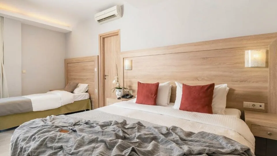 Atmosfera hotela Lefkas spaja duh tradicionalnog jonskog ostrva sa komforom gradskog hotela. Enterijer je jednostavan i funkcionalan, sa toplim bojama i prijatnim zajedničkim prostorima, što ga čini pogodnim kako za kraće poslovne boravke, tako i za duže letnje odmore. Zahvaljujući centralnoj lokaciji, hotel je idealan izbor za parove koji žele da budu u centru zbivanja, putnike koji planiraju da svakog dana istražuju druge plaže, ali i za poslovne goste kojima su važni konferencijska sala, stabilan wifi u sobama i brza veza sa kopnom.