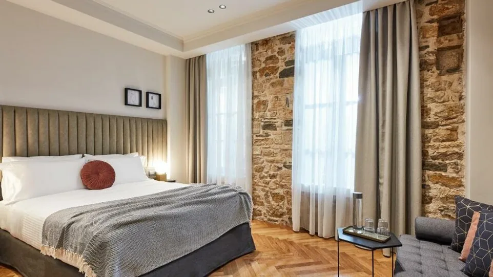 Smeštaj u hotelu Lithia organizovan je u pažljivo dizajniranim sobama i apartmanima boutique tipa. U obnovljenoj tradicionalnoj zgradi raspoređeno je svega nekoliko ekskluzivnih jedinica, što obezbeđuje intimnu atmosferu i mir. Gosti mogu da biraju između udobnih dvokrevetnih soba, prostranijih porodičnih soba i elegantnog apartmana sa dodatnim dnevnim prostorom, pogodnog za duži boravak ili romantičan vikend. Svaka jedinica uređena je u savremenom minimalističkom stilu sa toplim detaljima, klimatizovana je i opremljena modernim sadržajima za udoban boravak.