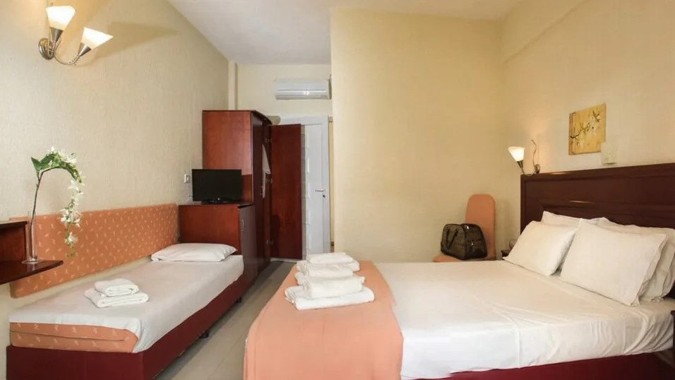 Smeštaj u hotelu Loutra Beach organizovan je u 22 udobne i lepo uređene sobe, renovirane i opremljene tako da zadovolje potrebe savremenih putnika. Gostima su na raspolaganju standardne dvokrevetne sobe, trokrevetne sobe, kao i porodične sobe koje mogu ugostiti do četiri osobe, što ih čini odličnim izborom za porodice sa decom. Sve sobe poseduju klima-uređaj, frižider, televizor sa satelitskim kanalima, sopstveno kupatilo sa fenom za kosu, kao i balkon ili terasu, pružajući prijatan prostor za večernje opuštanje nakon dana provedenog na plaži ili u obilasku okoline.