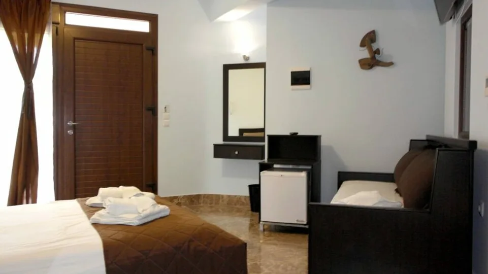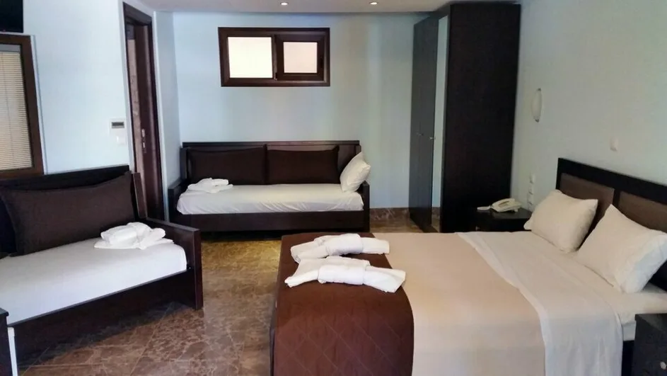 Smeštaj u hotelu Makednos organizovan je u nekoliko zgrada i obuhvata oko 40 komfornih soba različitih tipova. Na raspolaganju su standardne dvokrevetne i trokrevetne sobe, sobe sa krevetima na sprat idealne za porodice sa dvoje dece, kao i prostraniji porodični apartmani sa odvojenom spavaćom i dnevnom sobom. Sve jedinice su klimatizovane, imaju balkon ili terasu, kupatilo sa tušem i fenom, televizor, mini frižider, telefon i sef, a pojedine renovirane sobe nude savremeniji enterijer i dodatnu udobnost. Kapaciteti su prilagođeni boravku od 2 do 4 osobe, uz mogućnost boravka jednog deteta bez posebnog ležaja.