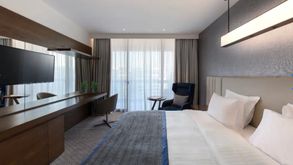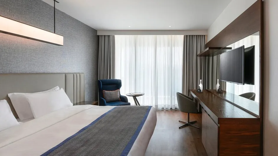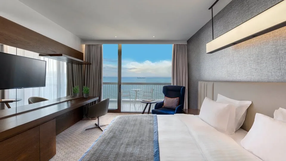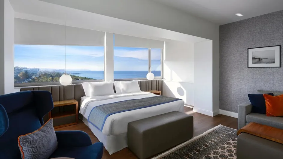 Hotel raspolaže sa oko 280 moderno uređених soba i apartmana, od kojih mnoge imaju balkon sa panoramskim pogledom na more ili grad. Sobe su prostrane, uređenog, savremenog dizajna, sa toplim tonovima i diskretnim luksuzom. U ponudi su standardne i superior sobe, veći apartmani, kao i luksuzne jedinice namenjene zahtevnijim gostima i poslovnim putnicima. Sve smeštajne jedinice opremljene su udobnim prirodnim dušecima, bogatim izborom jastuka, mini barom, sefom, modernom kupatilskom opremom, bade-mantilima i papučama, uz uslugu posluženja obroka u sobi tokom cele noći.