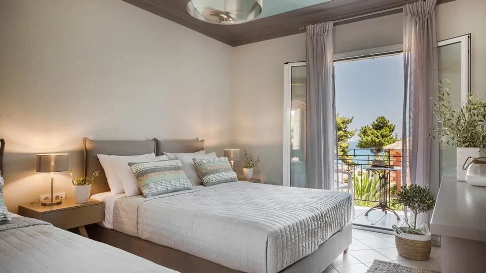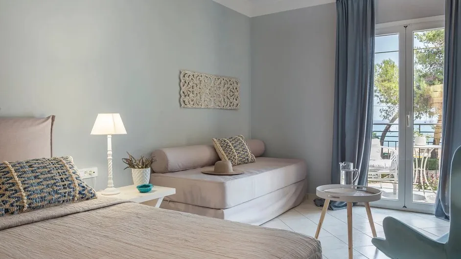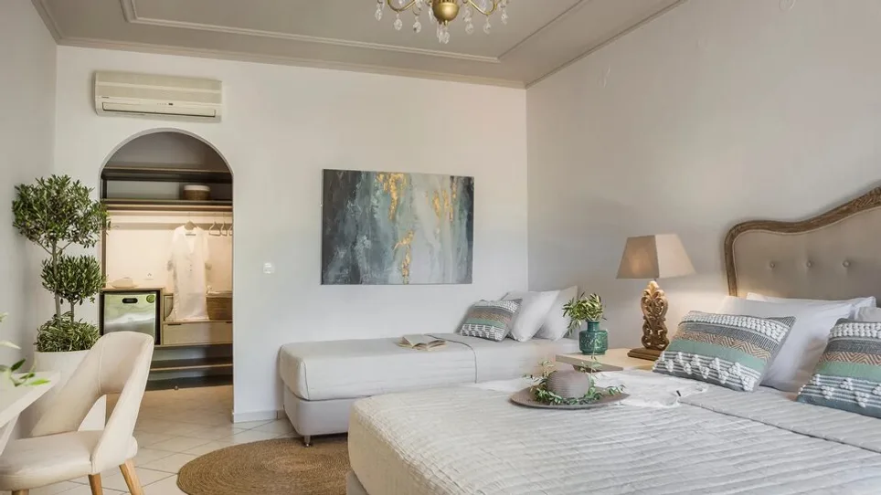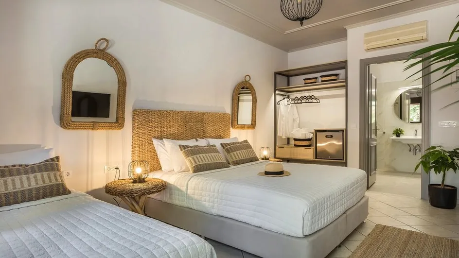 Hotelski kompleks raspolaže sa ukupno 43 sobe, kompletno renovirane i moderno uređene. Gostima su na raspolaganju standardne dvokrevetne i trokrevetne sobe, kao i porodične sobe i veći apartmani, od kojih većina ima pogled na more ili zelenilo bašte. Sve smeštajne jedinice imaju klima-uređaj, frižider, sef, televizor i moderno kupatilo sa tuš kabinom, dok pojedine sobe nude i privatnu terasu ili balkon, savršen za jutarnju kafu uz pogled na Jonsko more.