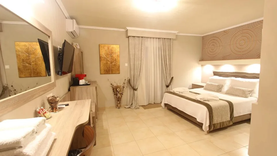 Objekat raspolaže sa oko 35 soba, uređenih u svetlim tonovima, sa naglaskom na udobnost i čistoću. Gostima su na raspolaganju standardne dvokrevetne i trokrevetne sobe, kao i prostraniji apartmani, idealni za porodice ili duže boravke. Sve smeštajne jedinice imaju klima-uređaj, frižider, telefon, kupatilo sa tušem ili kadom, kao i balkon ili terasu, od kojih deo gleda ka moru ili bazenu. Kapaciteti su prilagođeni kako parovima, tako i porodicama sa jednim ili dvoje dece, uz mogućnost dodatnog ležaja ili dečjeg kreveca na zahtev.